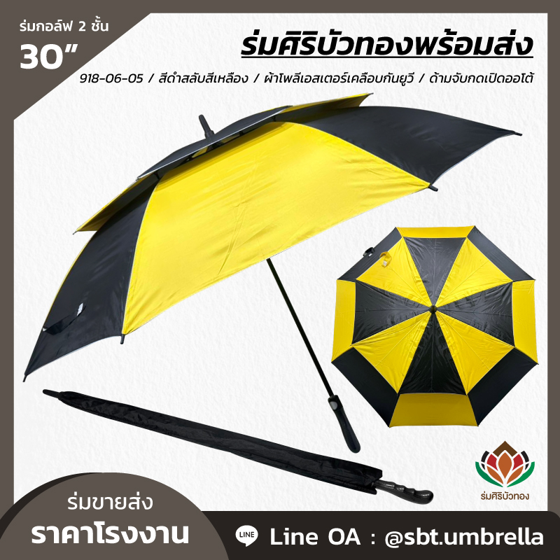 ร่มกอล์ฟ 30 นิ้ว 2 ชั้น สีดำสลับสีเหลือง