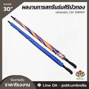 ร่มกอล์ฟ 30 นิ้ว สกรีน CSV ENERGY ผลิตจากผ้าโพลีเอสเตอร์เคลือบกันยูวี ด้ามจับกดเปิดออโต้ โครงไฟเบอร์ ตัวร่มมีขนาดใหญ่จึงเหมาะสำหรับกางในสนามกอล์ฟได้เป็นอย่างดี สามารถกันแดด กันฝนได้ดีอีกเช่นกัน