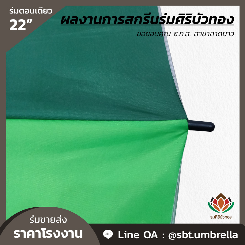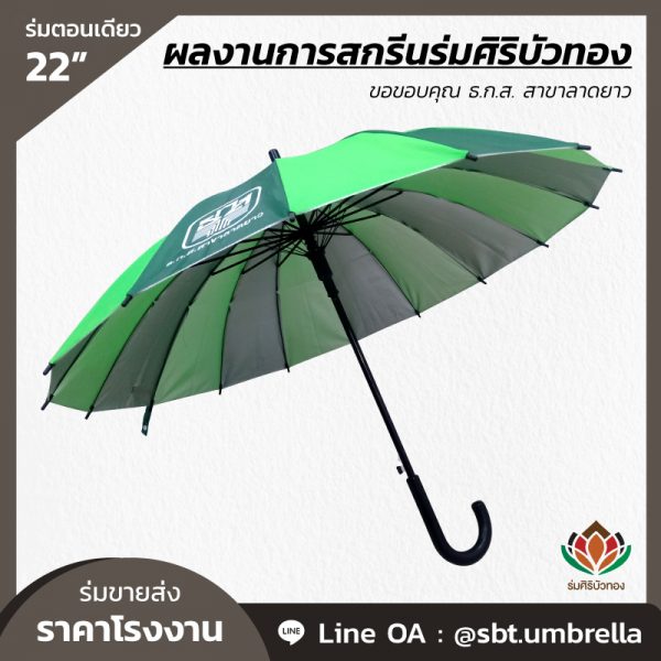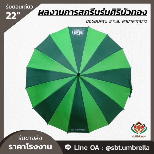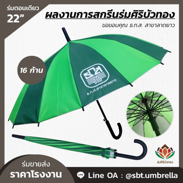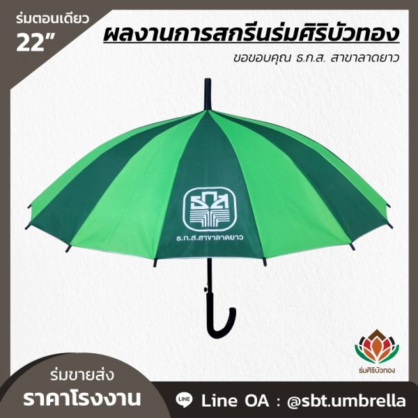 ร่มพรีเมียม ร่มตอนเดียว 22 นิ้ว 16 ก้าน สกรีน ธ.ก.ส. สาขาลาดยาว