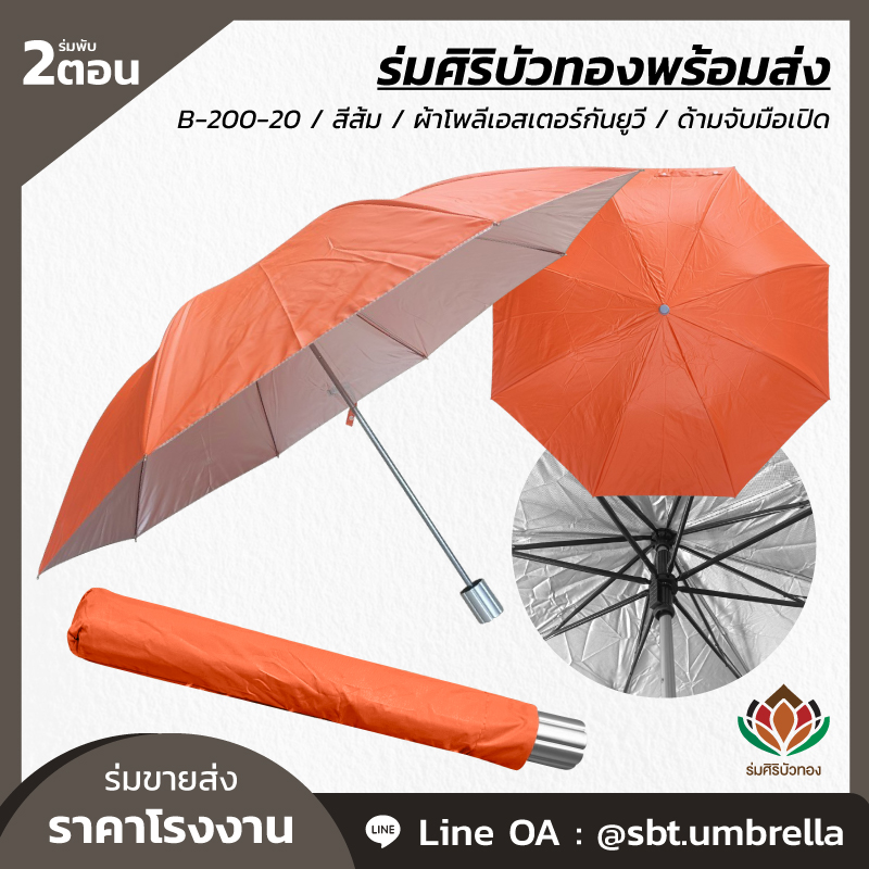 ร่มพับ 2 ตอน สีส้ม ผลิตจากผ้าโพลีเอสเตอร์เคลือบกันยูวี ด้ามจับมือเปิด พลาสติกเนื้อแข็ง โครงเหล็กแกน 10 มิลลิเมตร น้ำหนักเบา ง่ายต่อการพกพา กันแดด กันฝน เหมาะสำหรับใช้เป็นของที่ระลึกหรือใช้เป็นของขวัญวันพิเศษต่างๆ