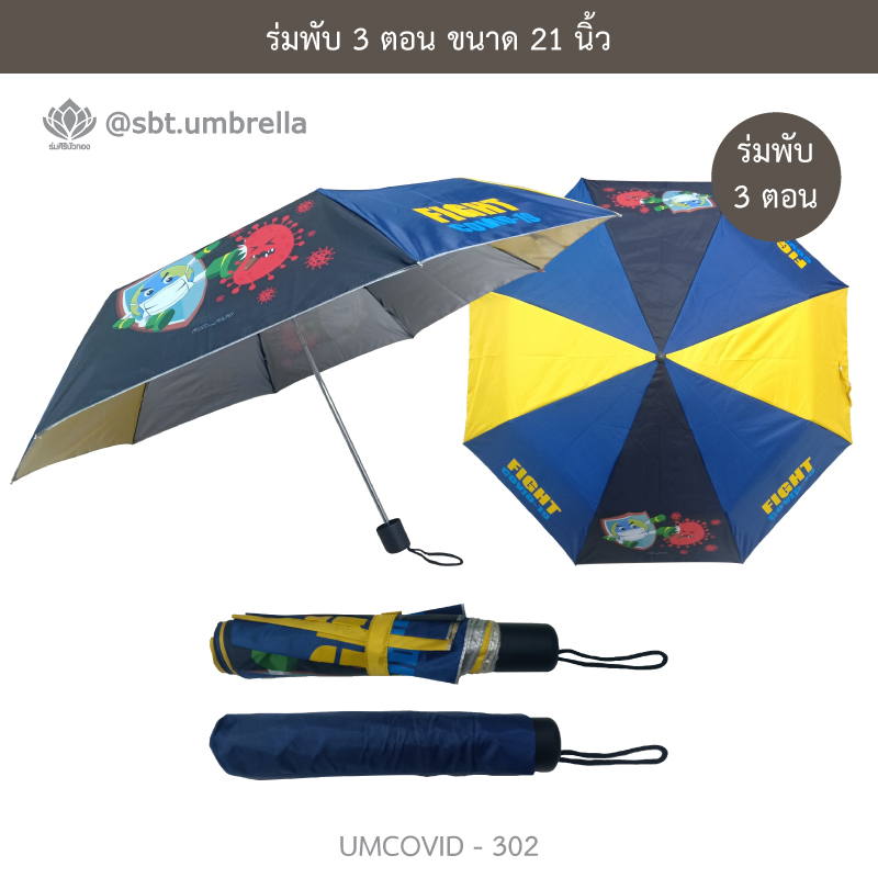 ร่มแฟชั่นพับ 3 ตอน ขนาด 21 นิ้ว ลายป้องกันโควิด COVID – 19 ผลิตจากผ้าโพลีเอสเตอร์ 190T เคลือบกันยูวีอย่างดี โครงเหล็ก ซี่ลวด 8 ก้าน ด้ามจับมือเปิด มีน้ำหนักเบา สามารถพกพาติดกระเป๋าได้ กันแดด กันฝน ได้เป็นอย่างดี สามารถนำไปใช้เป็นของที่ระลึกแจกในงานต่าง ๆ ได้เป็นอย่างดี และท่านสามารถสั่งสกรีนลวดลายแบบต่าง ๆ ตามที่ท่านต้องการได้อีกเช่นกัน เรามีทีมงานที่เชี่ยวชาญด้านการสกรีนร่มเป็นอย่างดี เพื่อตอบโจทย์ให้กับลูกค้า ให้พึงพอใจกับคุณภาพที่ดีที่สุด