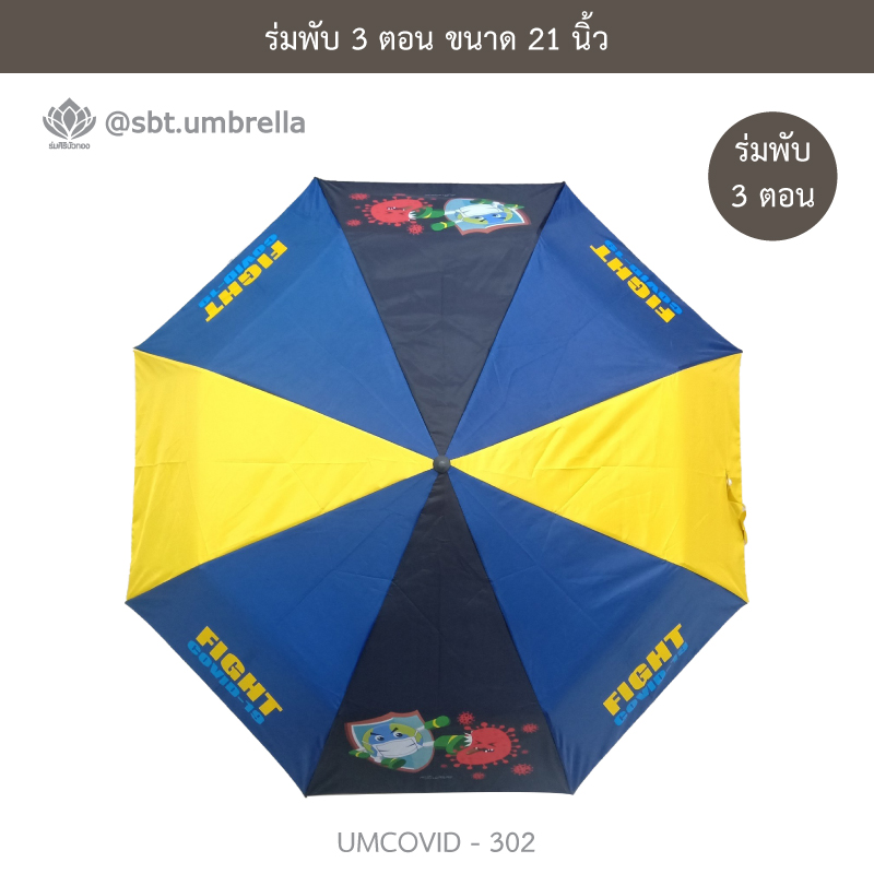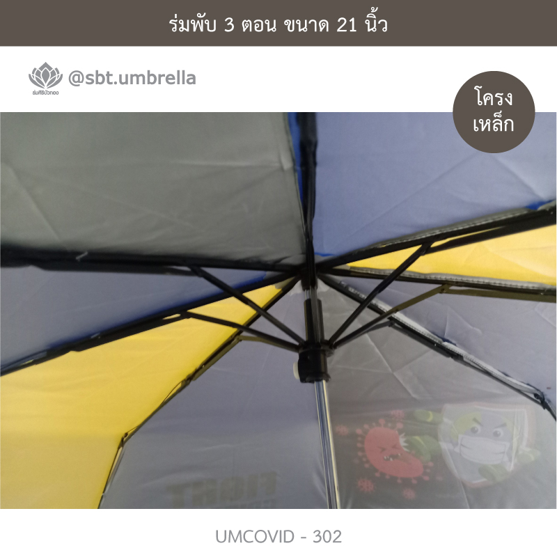 ร่มแฟชั่นพับ 3 ตอน ลายป้องกันโควิด COVID – 19