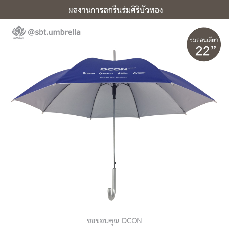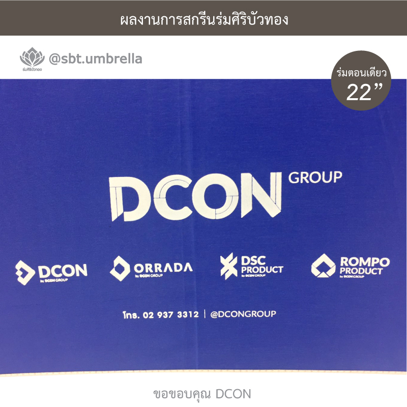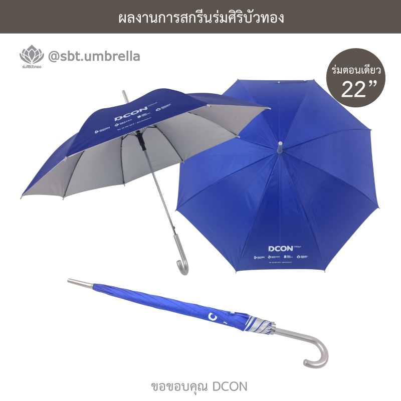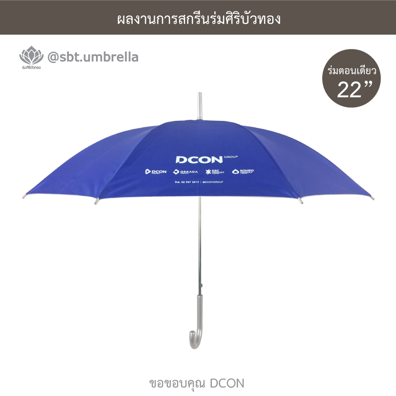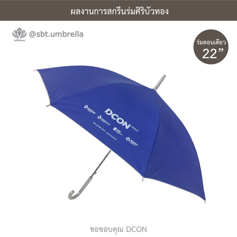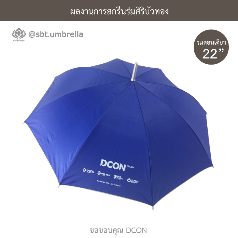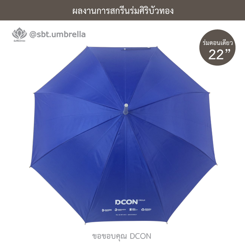 ร่มพรีเมียม ร่มตอนเดียว 22 นิ้ว สกรีน DCON ผลิตจากผ้าโพลีเอสเตอร์ เคลือบกันยูวี กันแดด กันฝน ได้เป็นอย่างดีและเหมาะสำหรับใช้เป็นของที่ระลึกในงานต่างๆได้เป็นอย่างดี