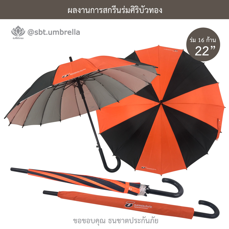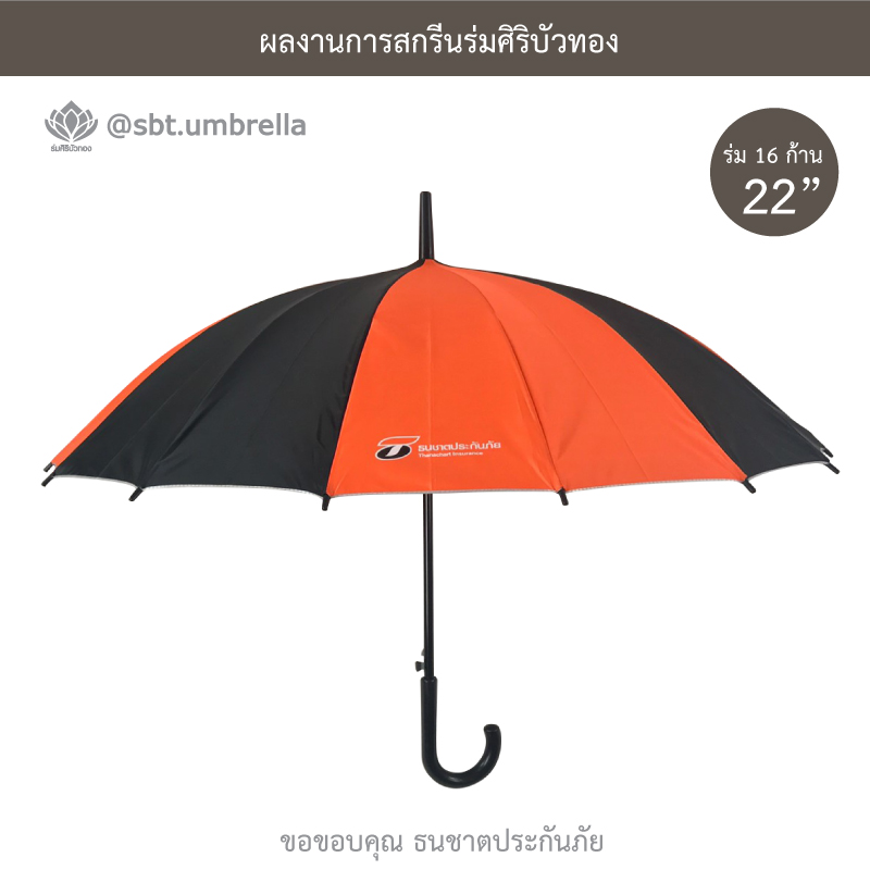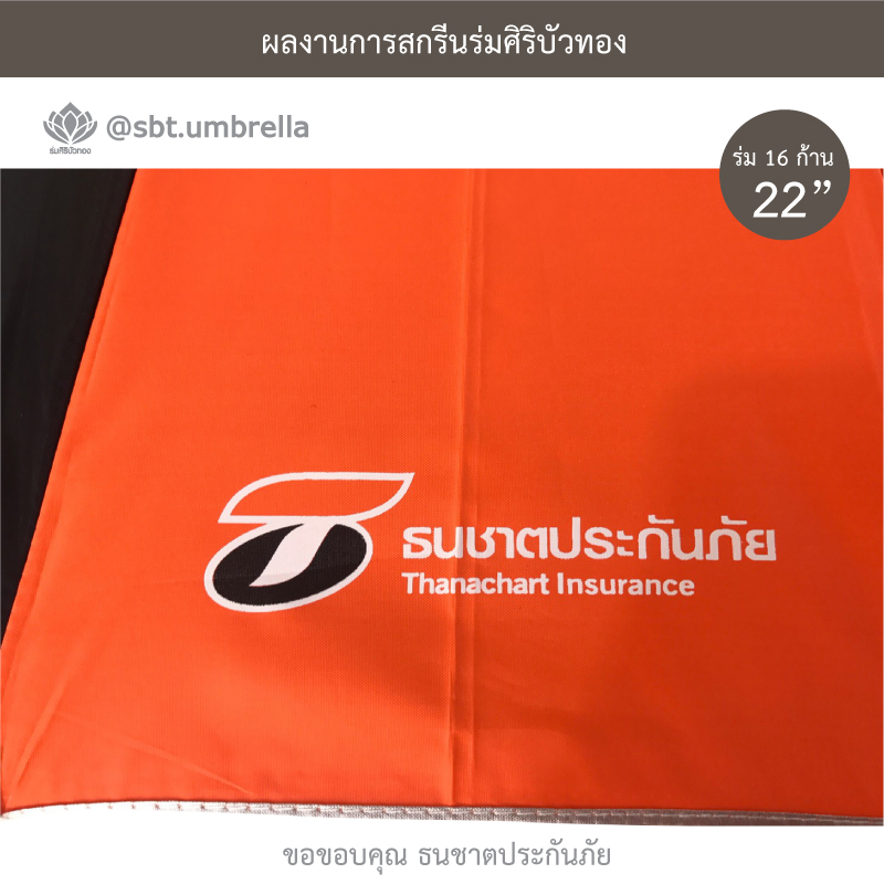 ร่มพรีเมียม ร่มตอนเดียว 22 นิ้ว 16 ก้าน สกรีน ธนชาตประกันภัย