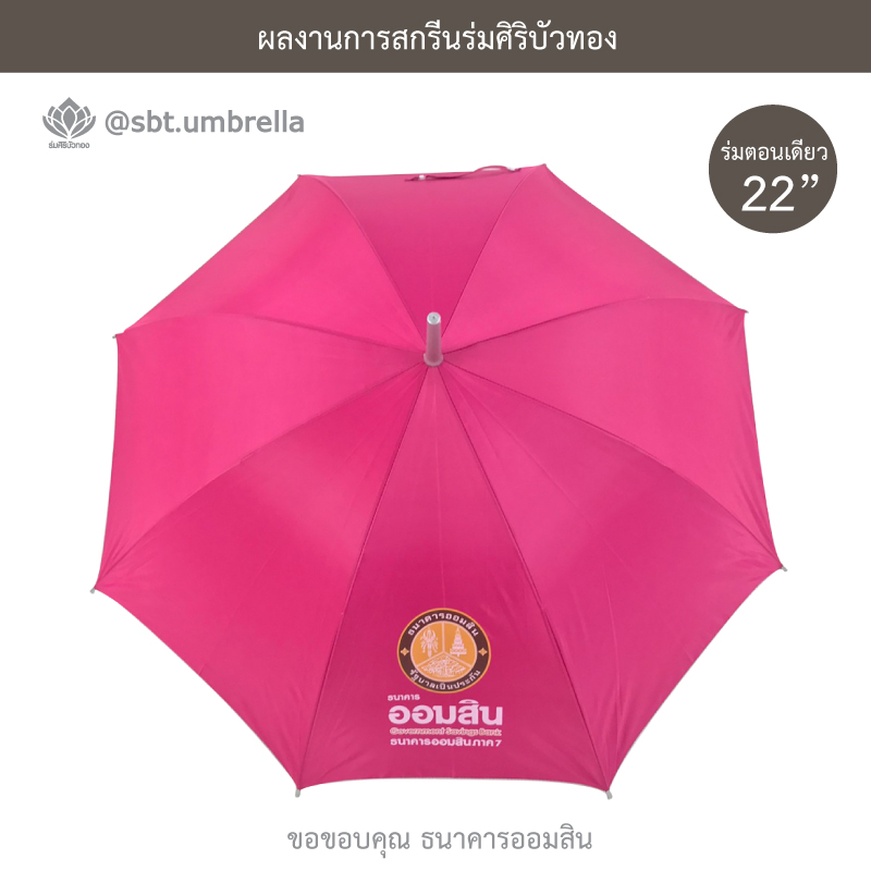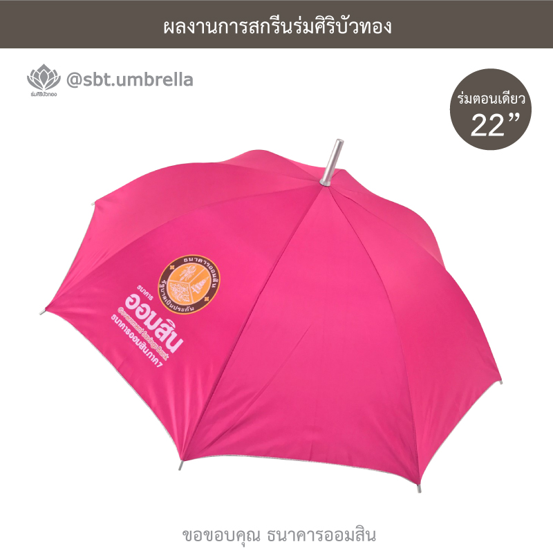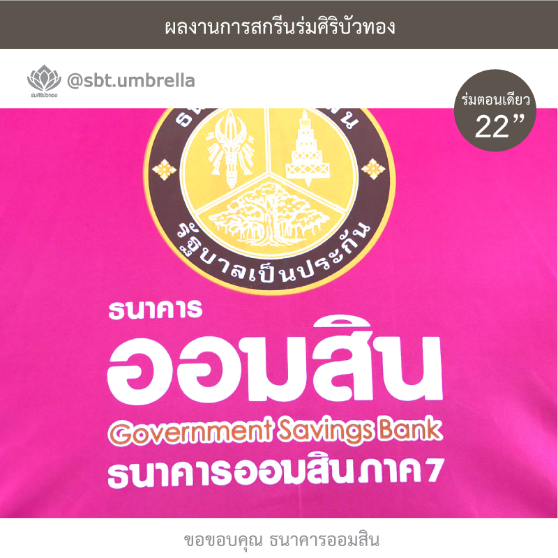 “โรงงานร่มศิริบัวทอง” ได้ผลิตและจำหน่ายร่มขายส่งราคาถูก สามารถสกรีนโลโก้บนร่มได้ตามแบบที่ท่านต้องการให้กับทุกท่านได้ การผลิตเป็น สามารถเลือกสีผ้าร่มได้ตามที่ท่านต้องการเลือกได้ ใช้เพื่อกางกันฝน กันแดด ได้ดี เราขอ ขอบคุณ ธนาคารออมสิน ที่ไว้วางใจในเรา