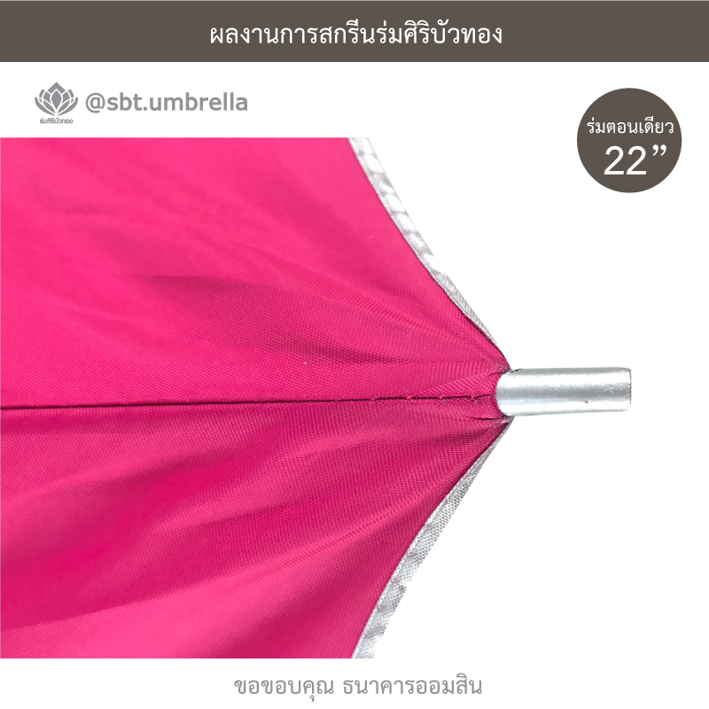ร่มพรีเมียม ร่มตอนเดียว 22 นิ้ว สกรีน ธนาคารออมสิน ผลิตจากผ้าโพลีเอสเตอร์ เคลือบกันยูวี กันแดด กันฝน ได้เป็นอย่างดีและเหมาะสำหรับใช้เป็นของที่ระลึกในงานต่างๆได้เป็นอย่างดี